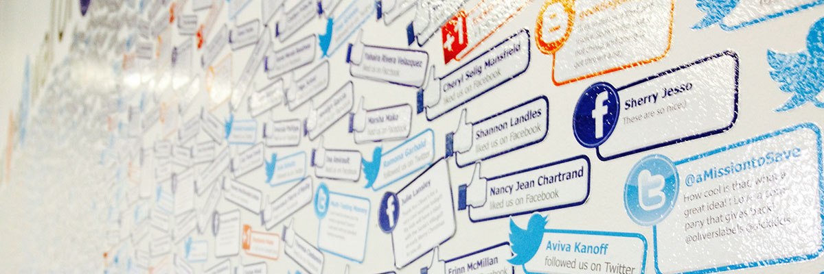 We genuinely love hearing from our friends through social media. Be it a ‘Like’, follow or comment, we think each interaction is important and should be shared. That was the inspiration behind the Oliver’s Labels, Great Wall of Friends - a monument to our friends on social media. The interactions you have with us on Facebook, Twitter, Google+ and our blog will be printed on an actual physical label. Then, we stick that label on our Great Wall of Friends at Oliver’s Labels HQ and take a photo to share back with you! Join the online conversation to be a part of our wall, our company, and our story.